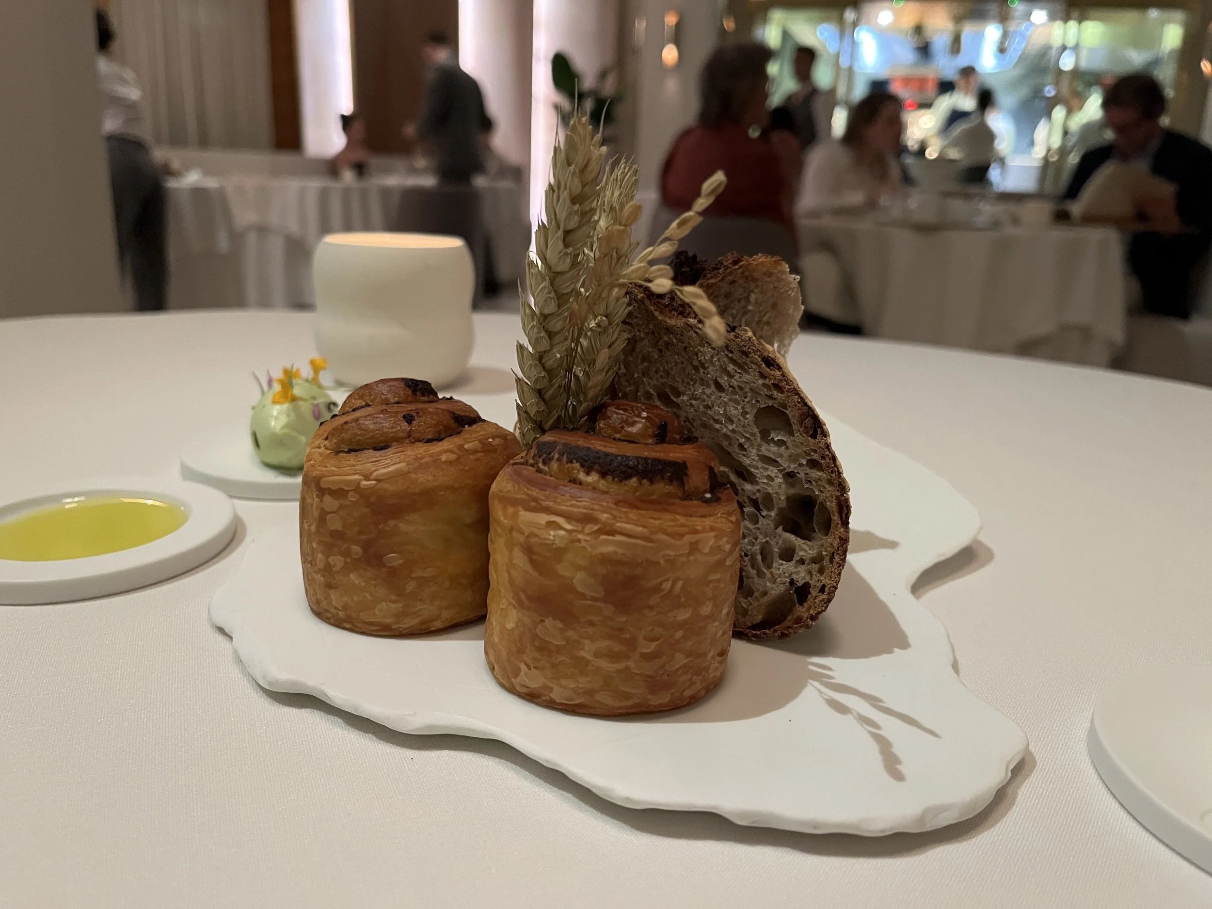 We also got a plate of breads. 2 types - mushroom brioche and sourdough. Seems they recycled the mushroom brioche from the mushroom course. I like that they gave me normal butter as opposed to my mum’s very green butter and herby butter. She said her butter was very light and airy. Mine was normal butter, I think unsalted.