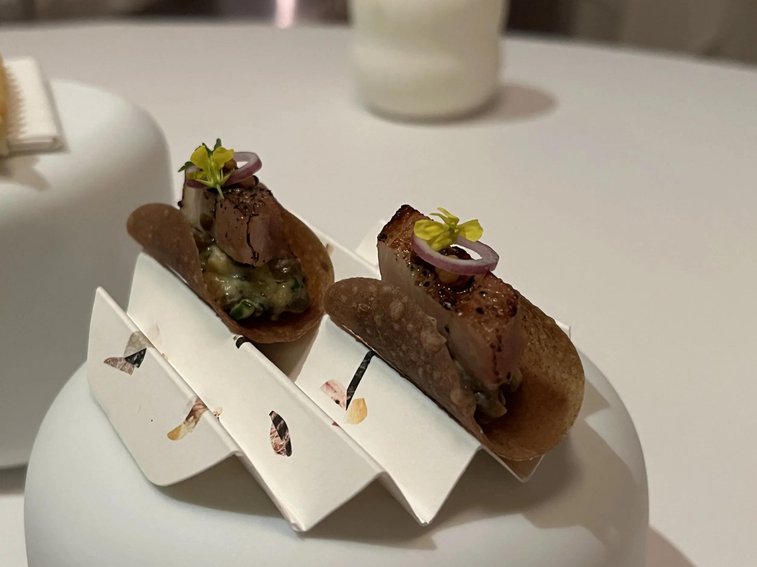 The plating was reminiscent of the 2020 version but a little updated. I really enjoyed the perfectly done breast but not so much the leg (though notably not as slap-in-the-face spicy as last time). Mother, on the other hand, found the meaty part too gamy but enjoyed the leg. The pigeon messenger contained the same (or at least one of the same) messages from 2020. That’s not a problem, but just something I noticed.