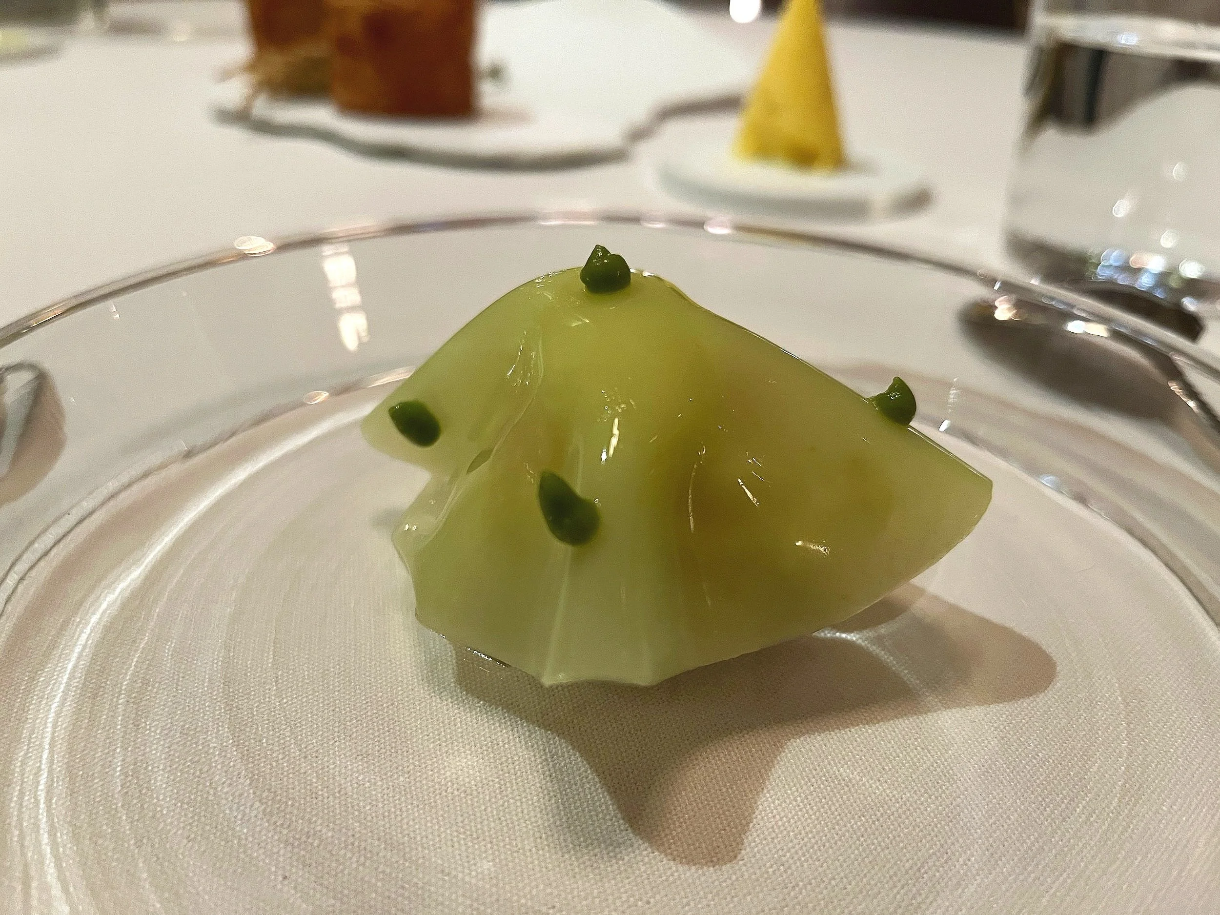 A waiter came by and he seemed to be primarily responsible for our table, as he was clearly tasked with attending to our requests/concerns and clarifying our food restrictions. Mine were no vegetables (mushrooms & seaweed OK) and no spice; my mother’s included no meat tartare and no truffle. I really appreciate that he tried very hard to confirm my boundaries when it comes to ‘vegetables’. He practically checked with me for everything green, leafy, or onion-y including. He also checked with my mother to confirm her restrictions regarding tartare and whether truffle included mushrooms that aren’t truffle. However, despite all this checking, I feel like some still slipped through the cracks which is not what I’d expect from 3 Michelin stars.