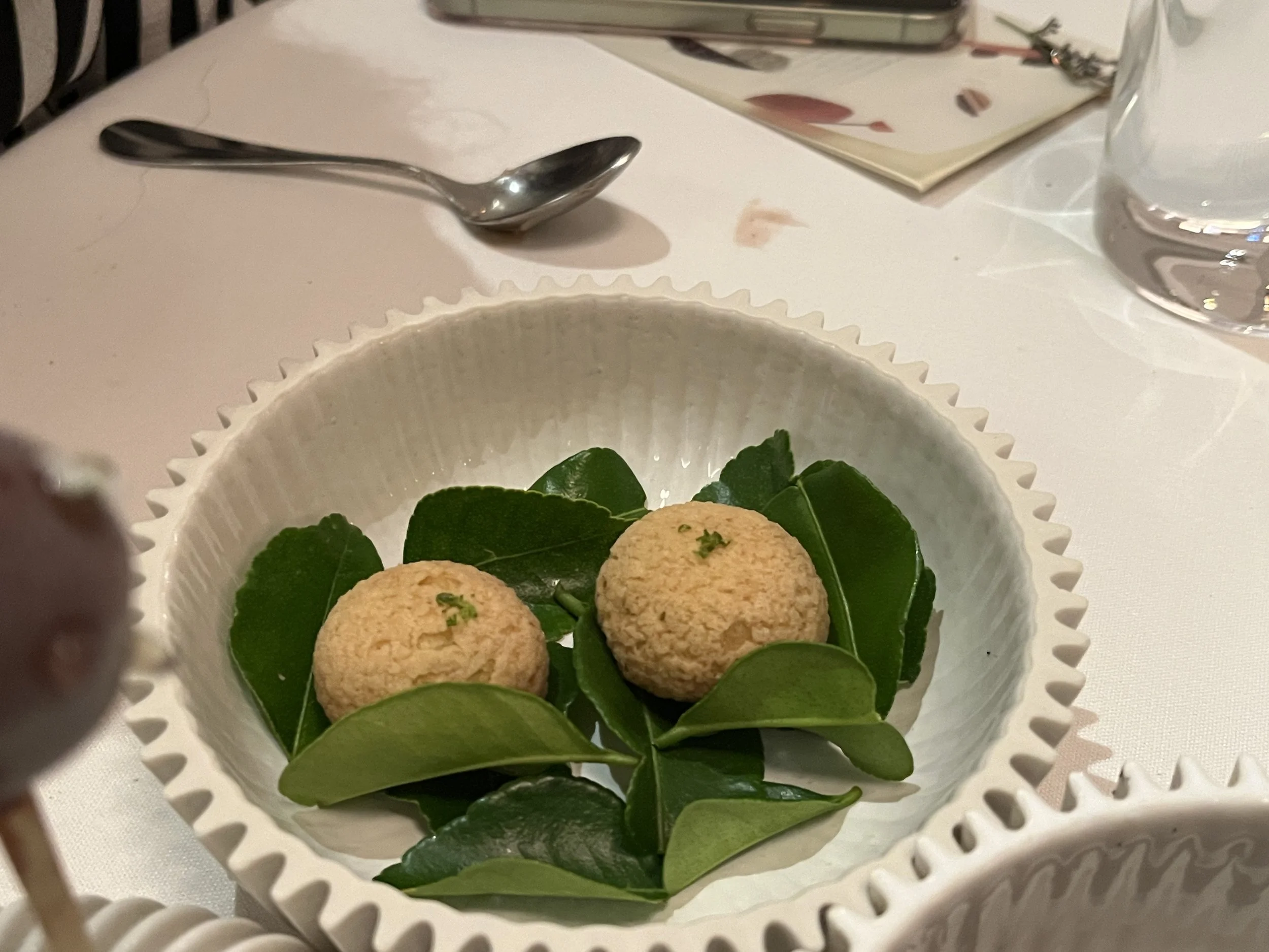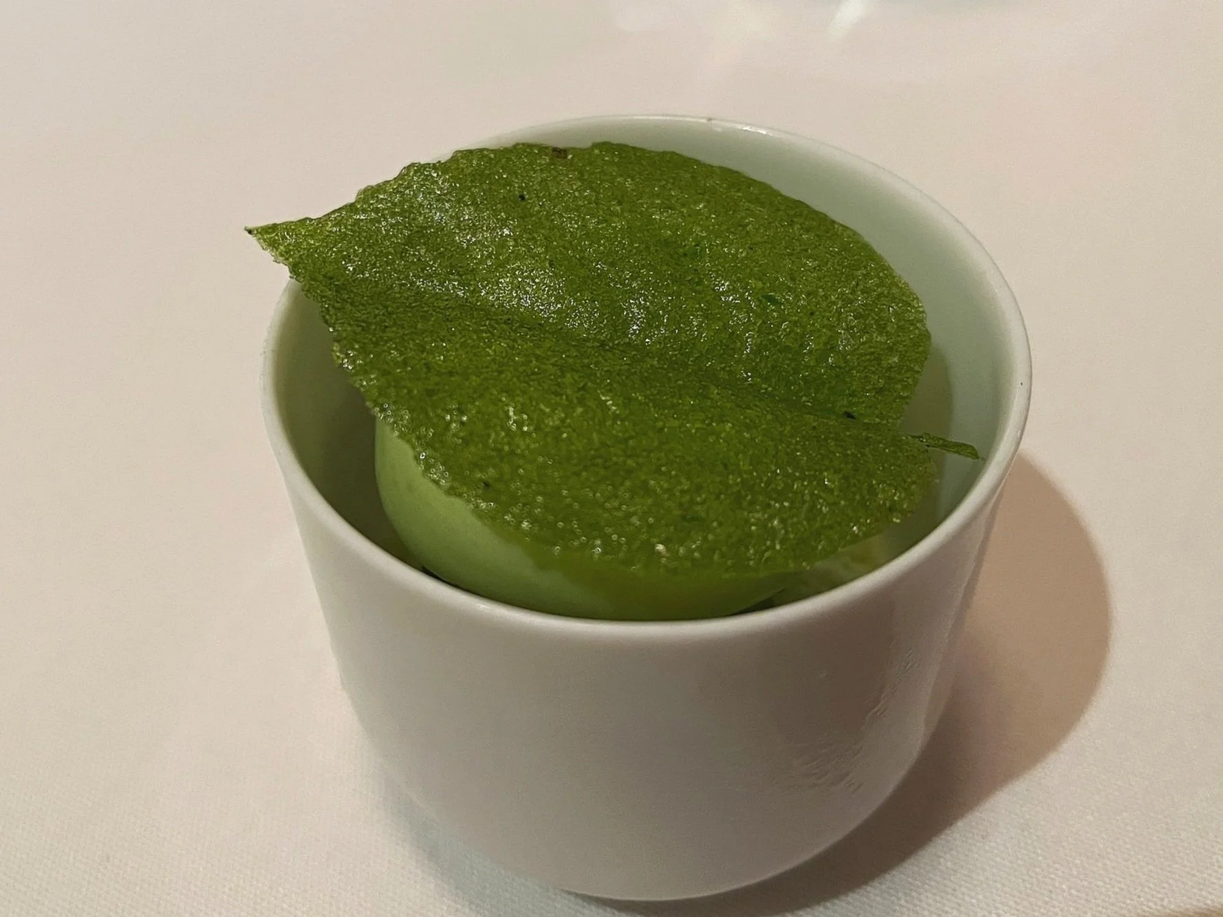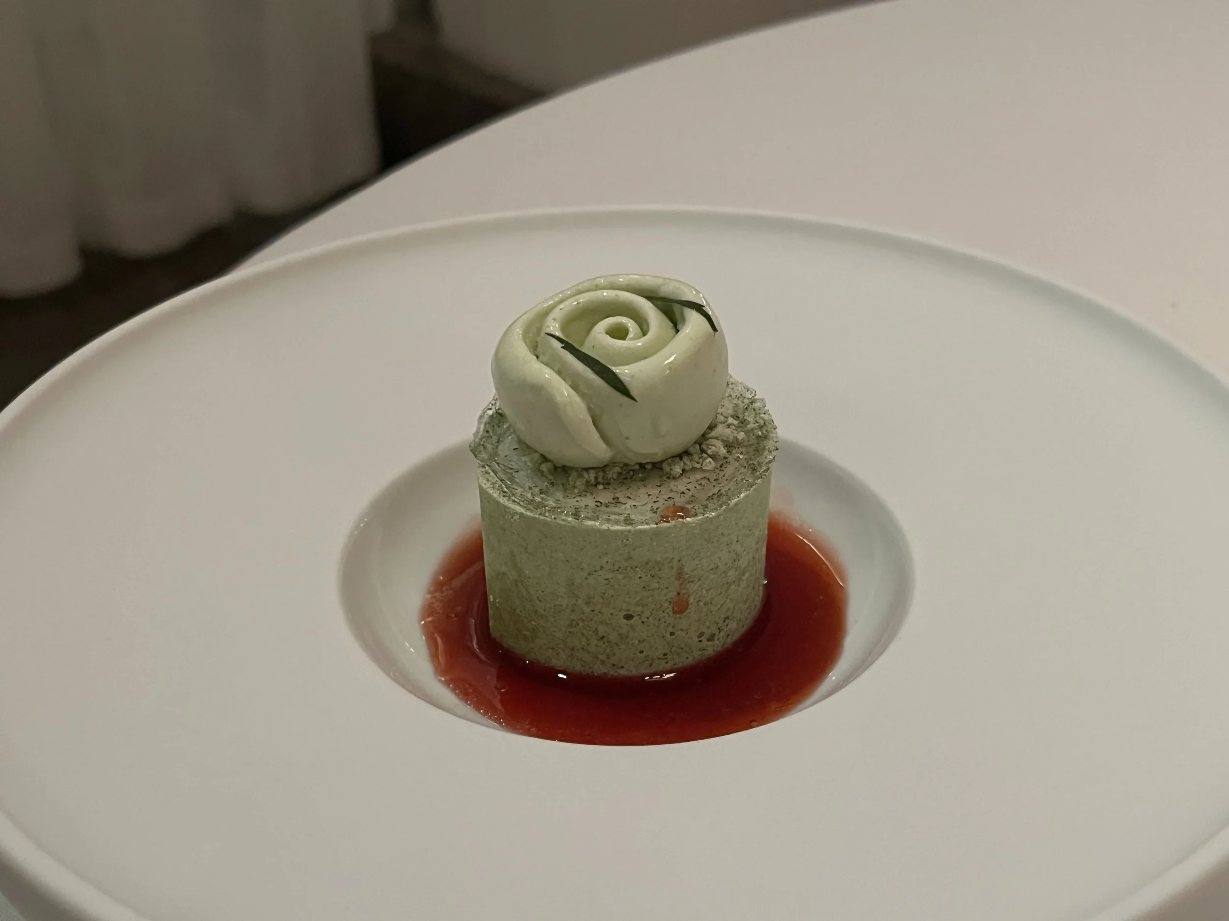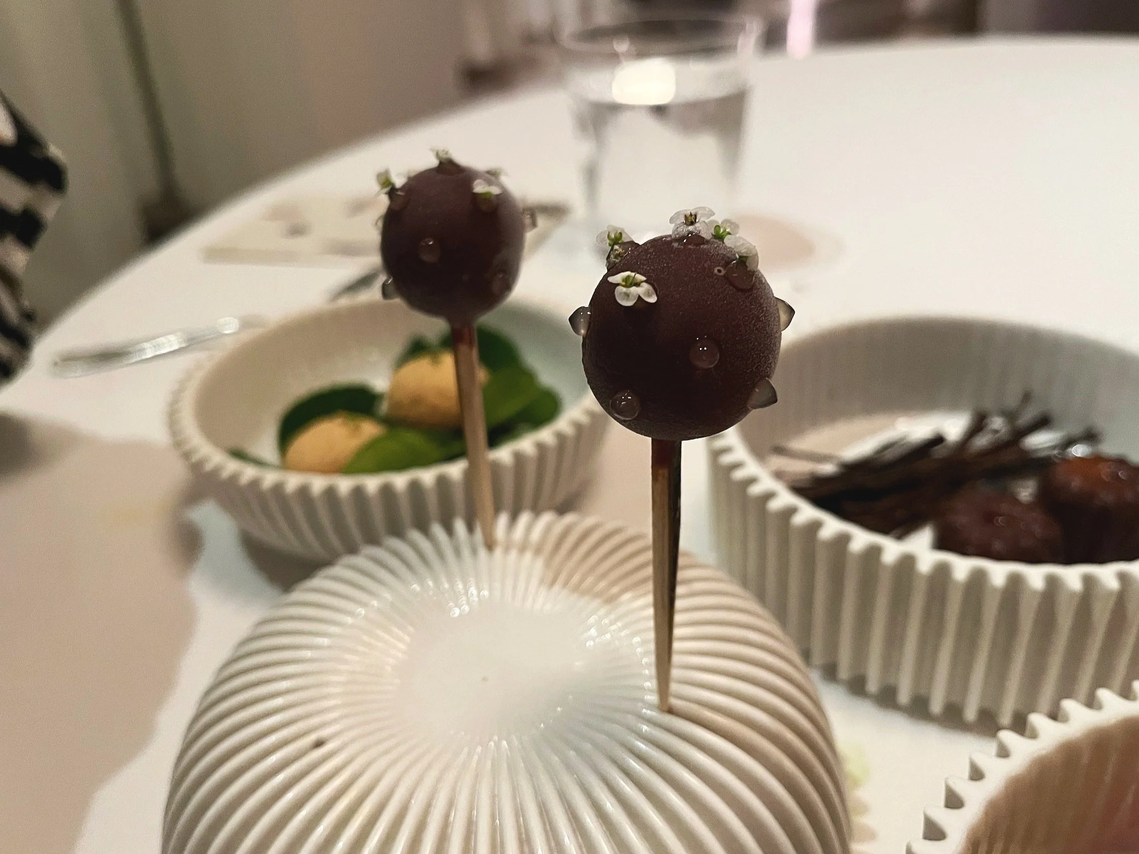Soon after came the petit fours. We started with rosemary ice cream pops. The rosemary was so strong… Too strong. Rather overwhelming and felt a bit suffocating.